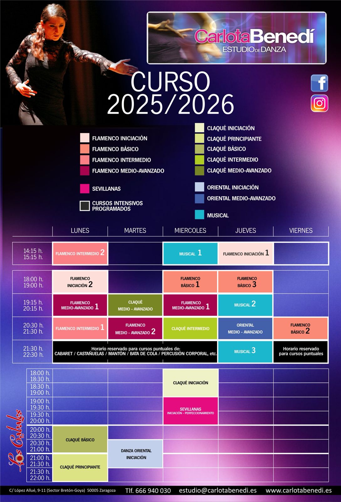 Allí se imparten clases regulares de flamenco, claqué, danza oriental y sevillanas; también se hacen cursos intensivos de fin de semana y de verano con figuras de primer orden.